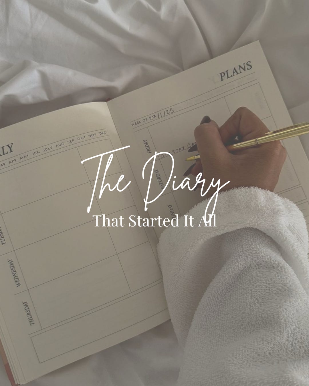 Up until that moment, I did not know that people wrote their thoughts in books without actually turning it into a “real” book for others to read. Receiving a weekly diary like this unlocked a hidden magic door in my life—a door I didn’t see but had always been there.